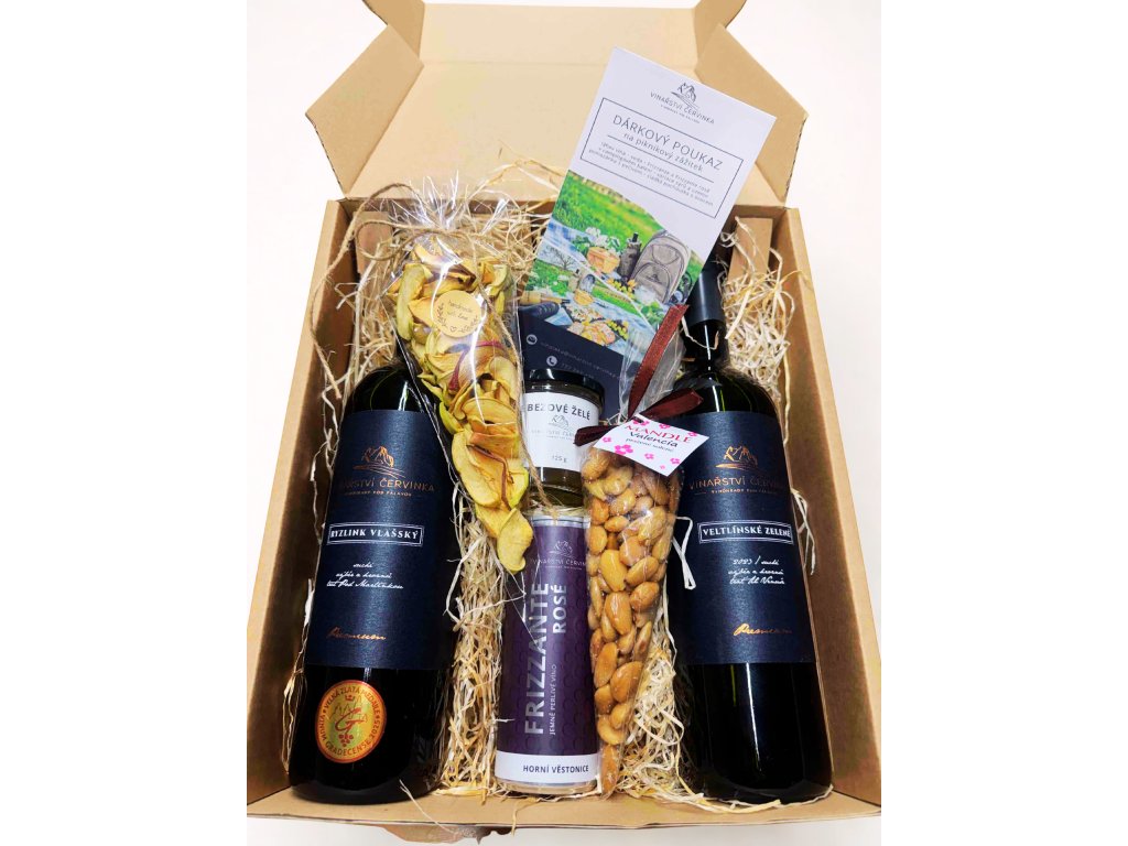 Dárkový poukaz na piknikový zážitek - vyrazíte s batůžkem plným vína, frizzante v campingovém balení, variací sýrů a uzenin, pomazánky s pečivem a jiných pochutin.